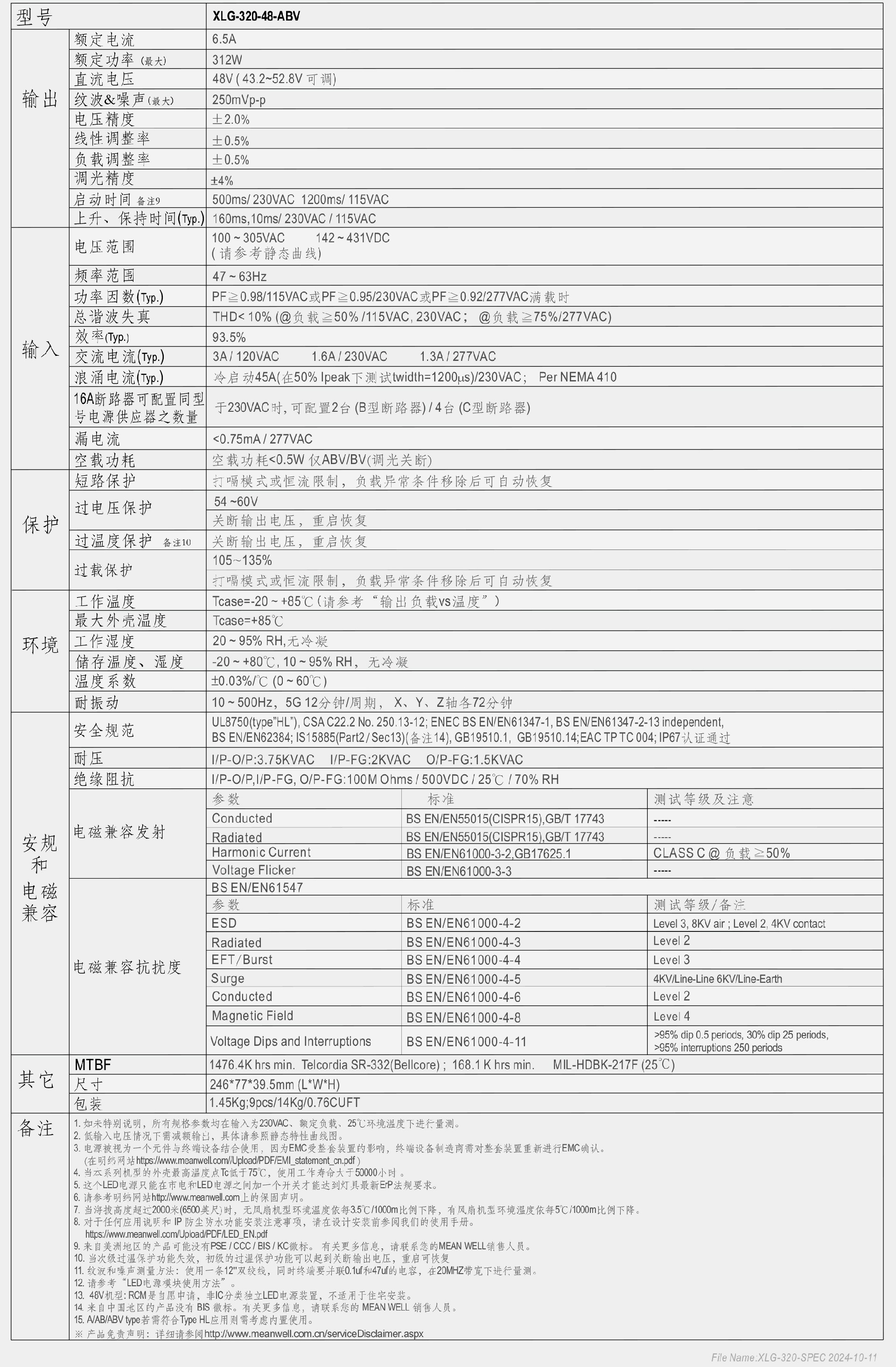 XLG-320系列是一款具有恒功率特性的315W交流轉直流LED電源供應器。此系列機型可工作于120-305VAC輸入電壓,并有1050mA-7420mA輸出額定電流的多種機型。因具有最高可達94.5%轉換效率,采用無風扇設計,并可在-40℃~+85℃的寬范圍機殼溫度下工作。金屬外殼以IP67高防護等級的設計,使得XLG-320能夠適應室內(nèi)和戶外的應用。此外,創(chuàng)新的設計與小巧的只寸使得此系列機型能夠可靠地點亮LED燈,適用于幾乎所有可安裝LED燈具的場所中的各種應用環(huán)境。XLG-320符合最新版IEC61347/GB19510.1和UL8750等安全要求。輸出與調(diào)光線路均符合最新的隔離設計要求,保障用戶與燈具系統(tǒng)在使用中的安全。