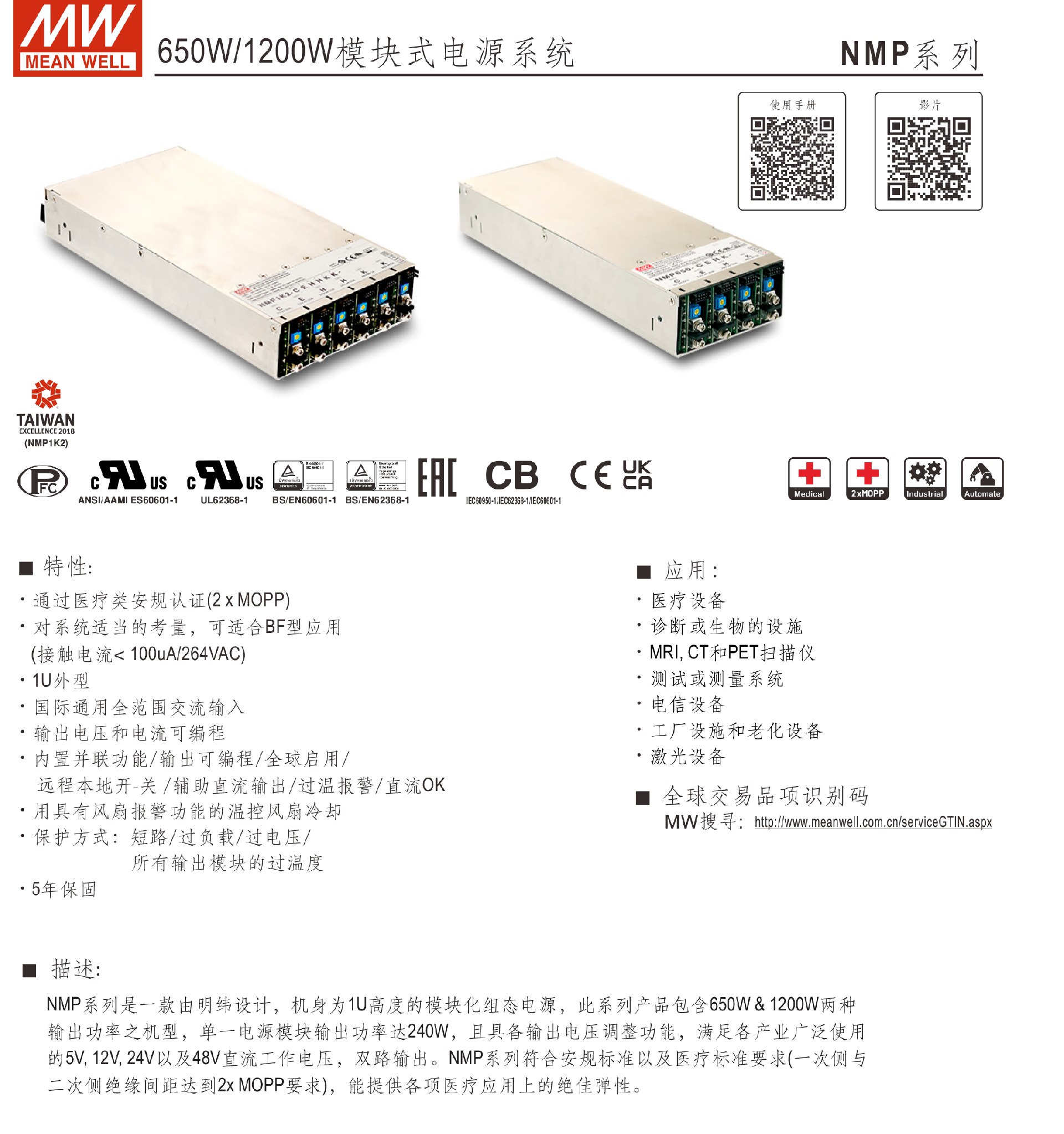 • 臺(tái)灣明緯電源NMP系列650W/1200W模塊式電源系統(tǒng)