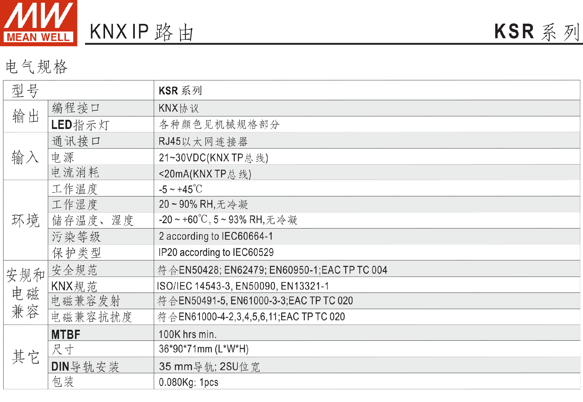 臺(tái)灣明緯KNX IP路由器KSR-01IP