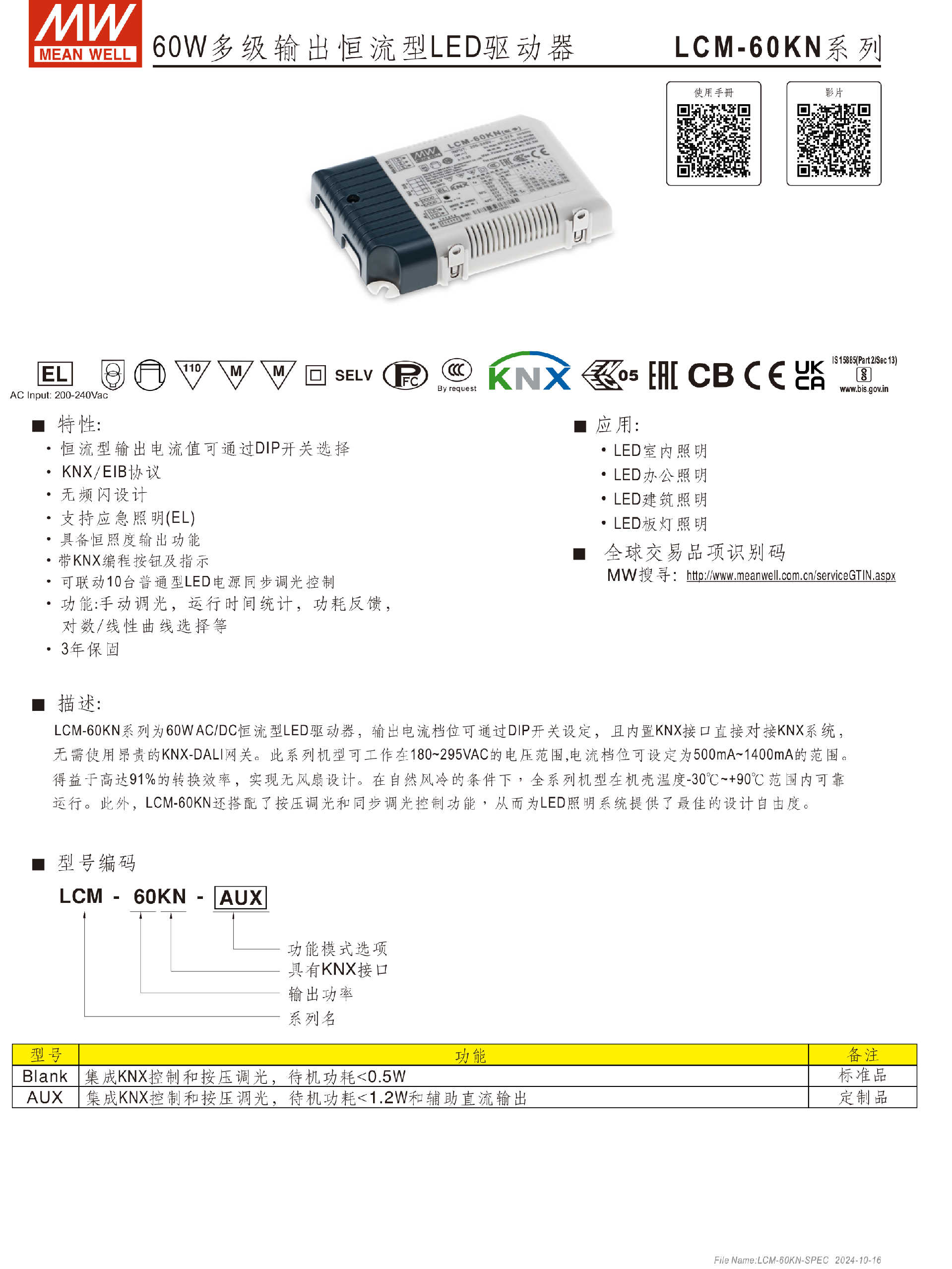 臺灣明緯60W多級輸出LED驅動器LCM-60KN系列-LCM-KN系列-東莞市誠緯實業(yè)有限公司-
