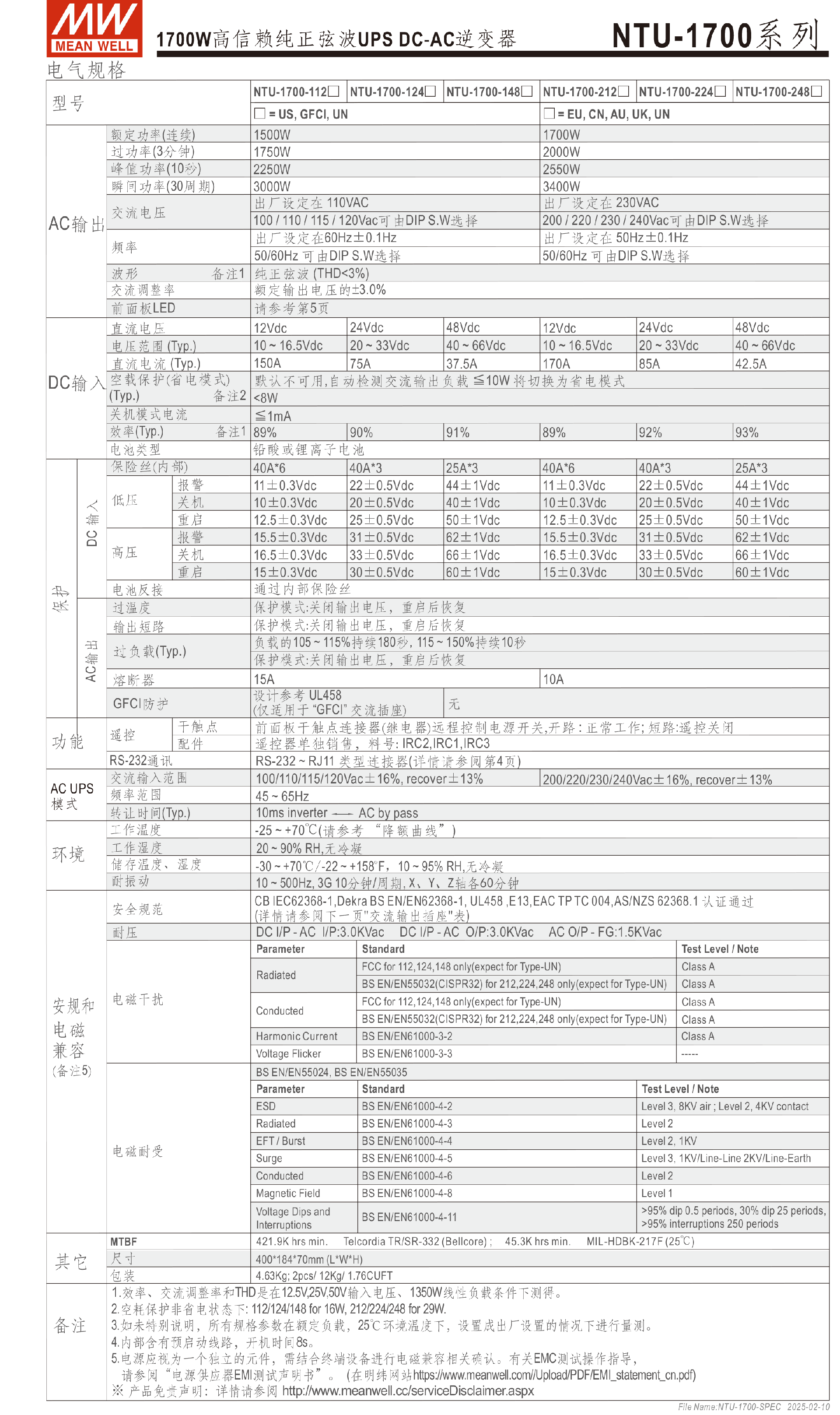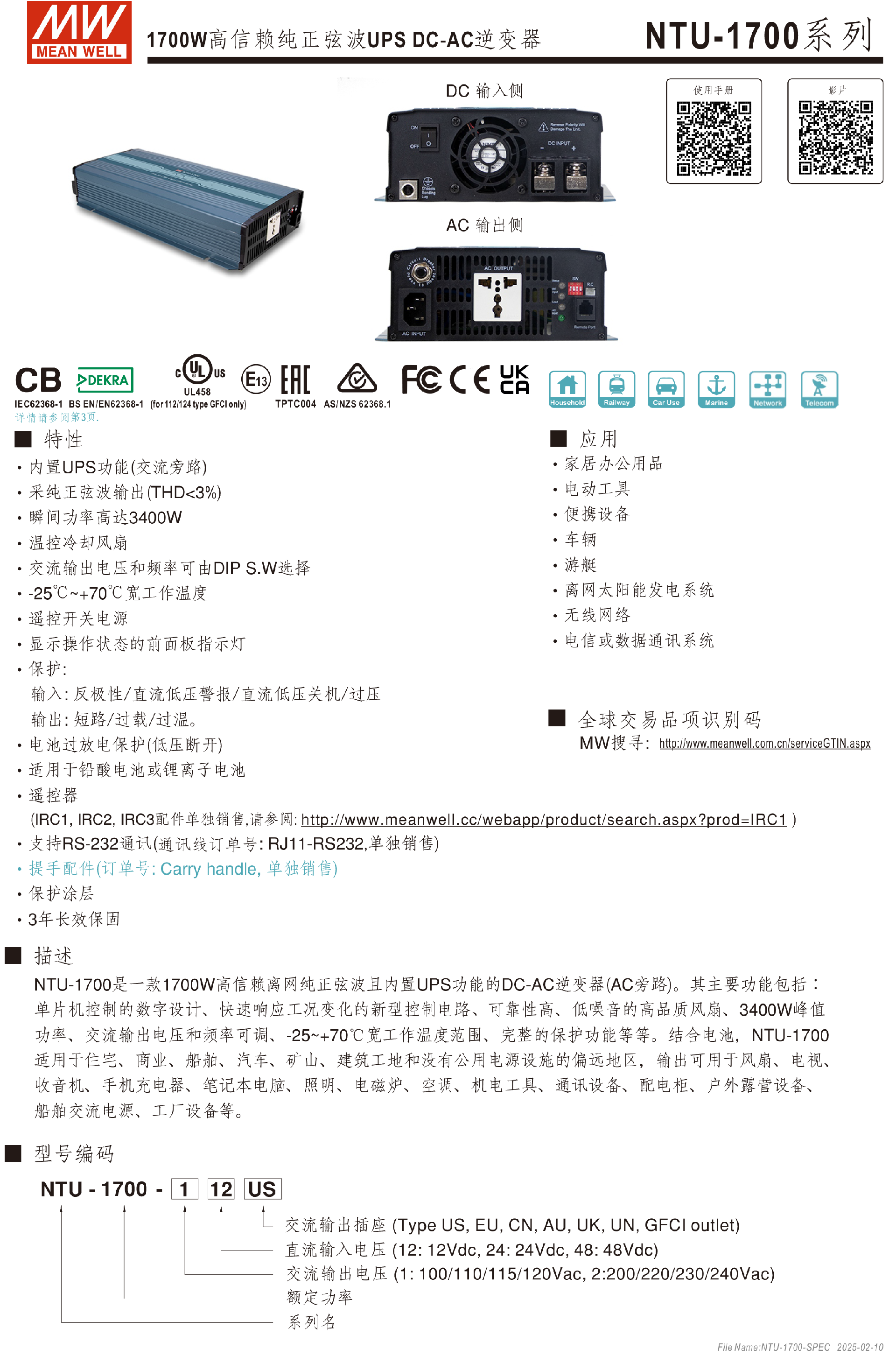 臺(tái)灣明緯NTU-1700系列DC-AC逆變器-NTU 系列-東莞市誠(chéng)緯實(shí)業(yè)有限公司-