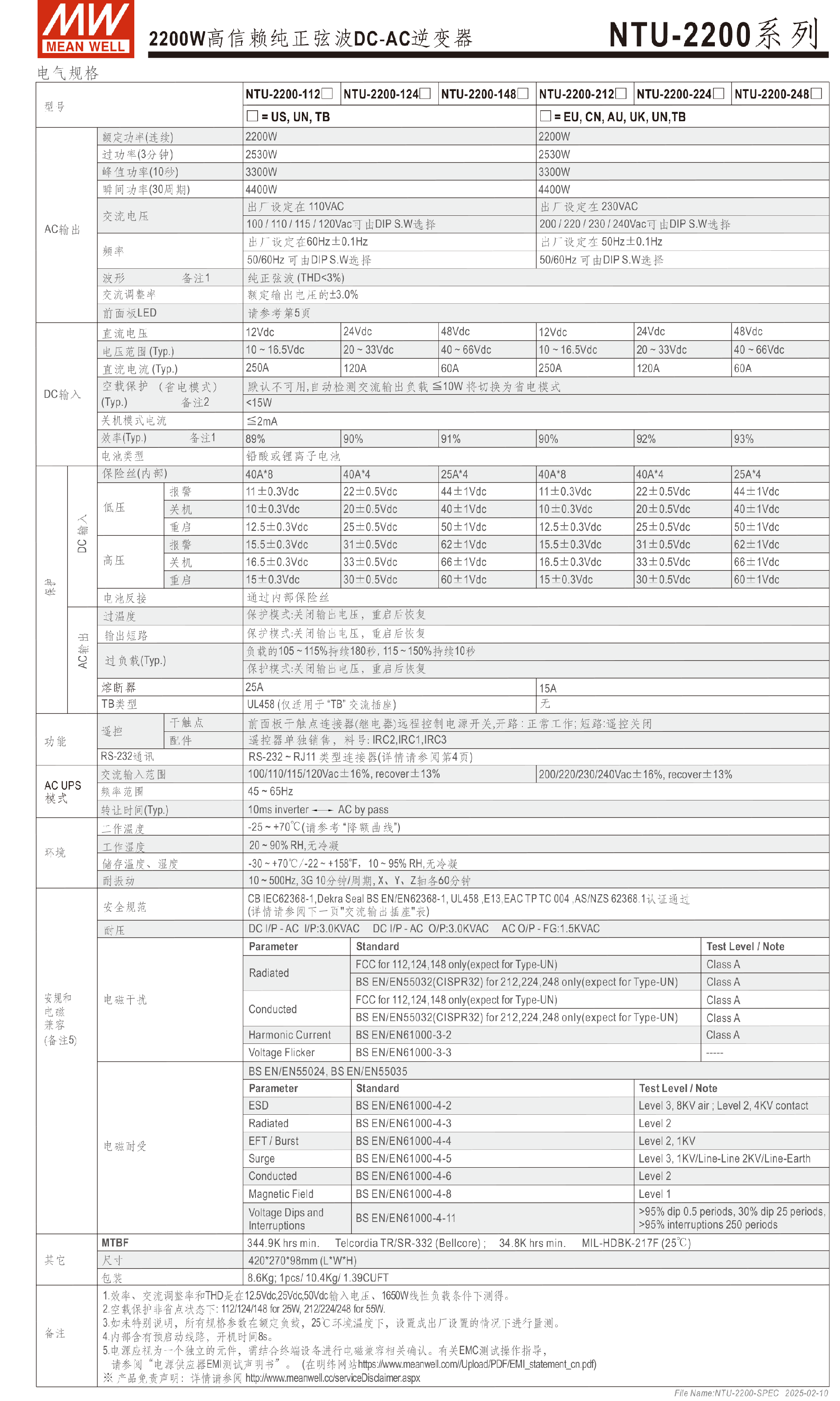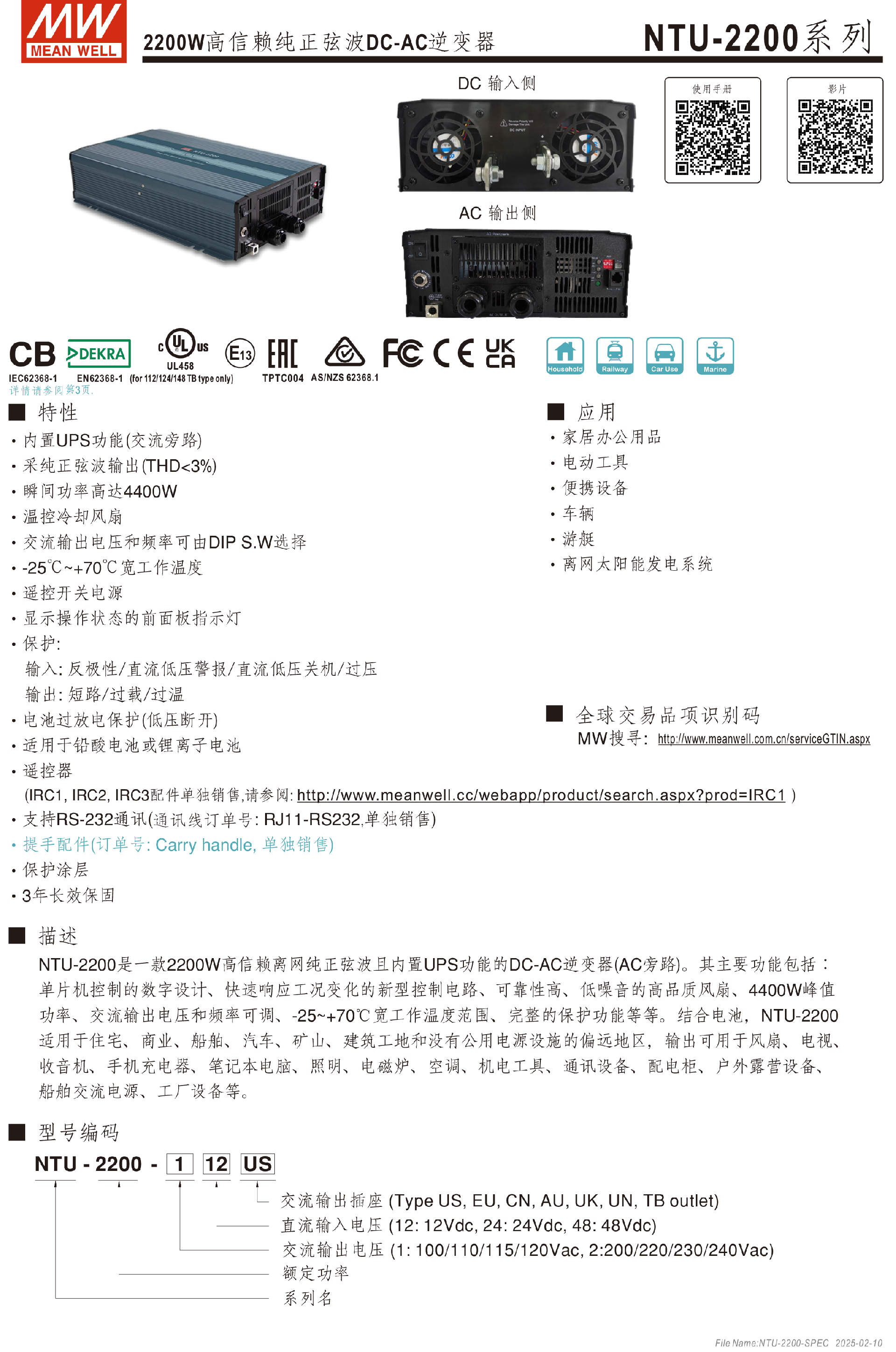 臺灣明緯NTU-2200系列DC-AC逆變器-NTU 系列-東莞市誠緯實業(yè)有限公司-