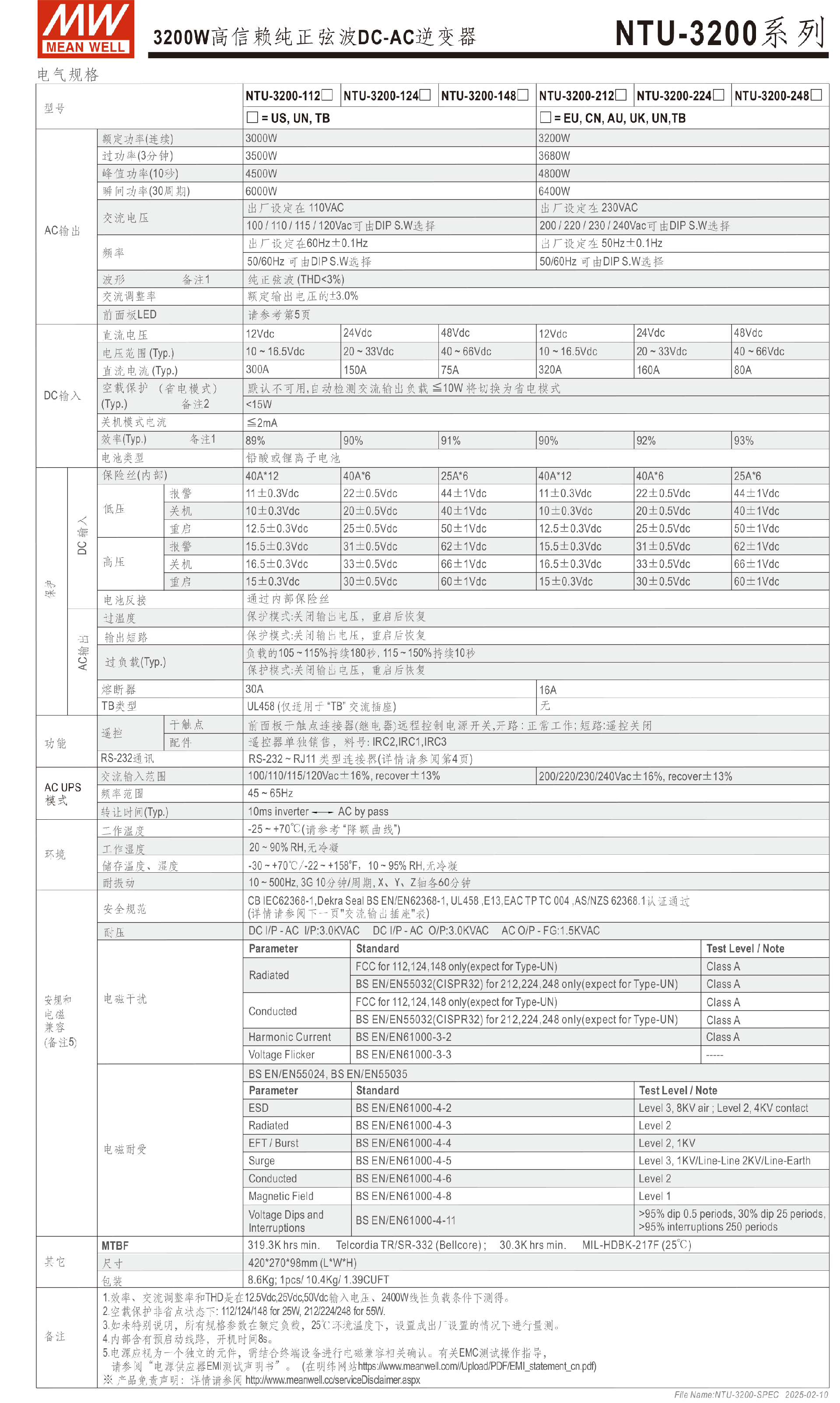臺灣明緯NTU-3200系列DC-AC逆變器-NTU 系列-東莞市誠緯實業(yè)有限公司-