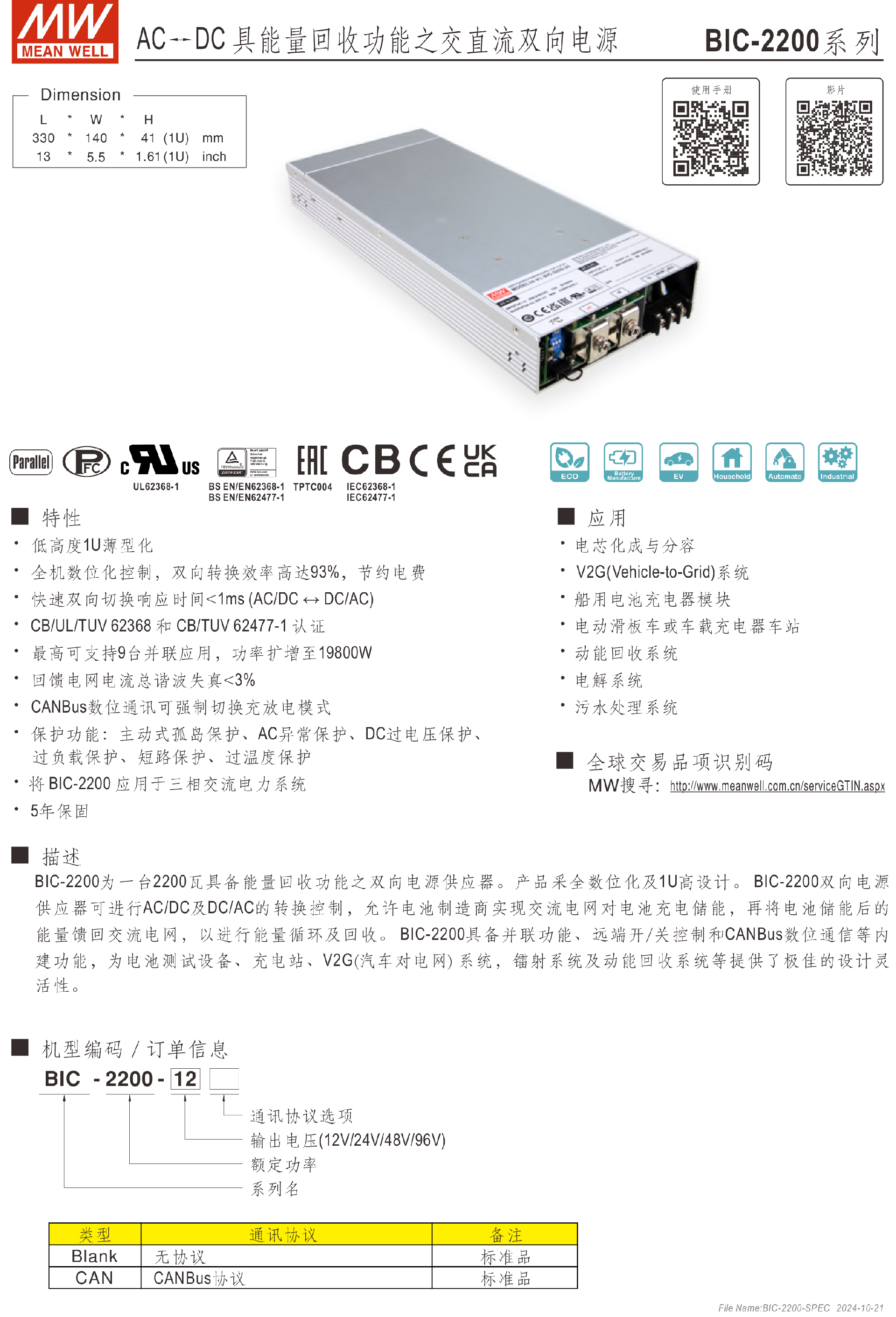 臺(tái)灣明緯BIC-2200系列AC DC具能量回收功能交直流雙向電源-BIC系列-東莞市誠(chéng)緯實(shí)業(yè)有限公司-