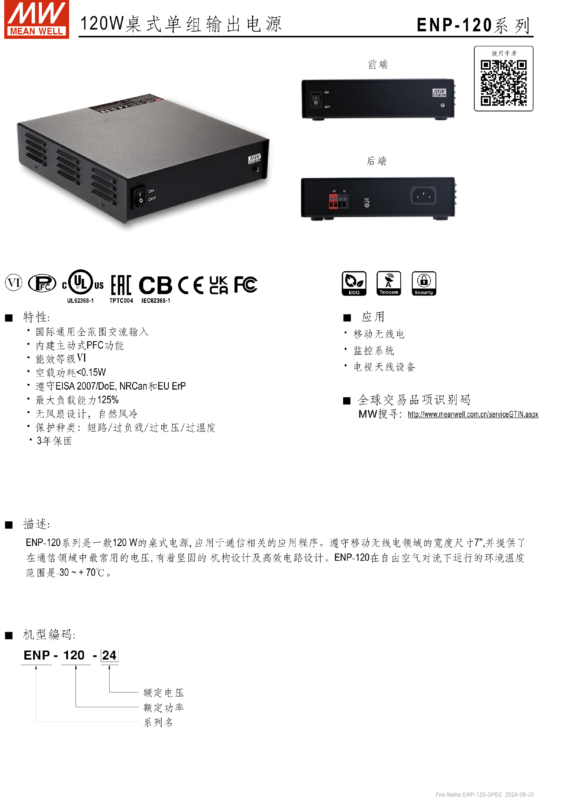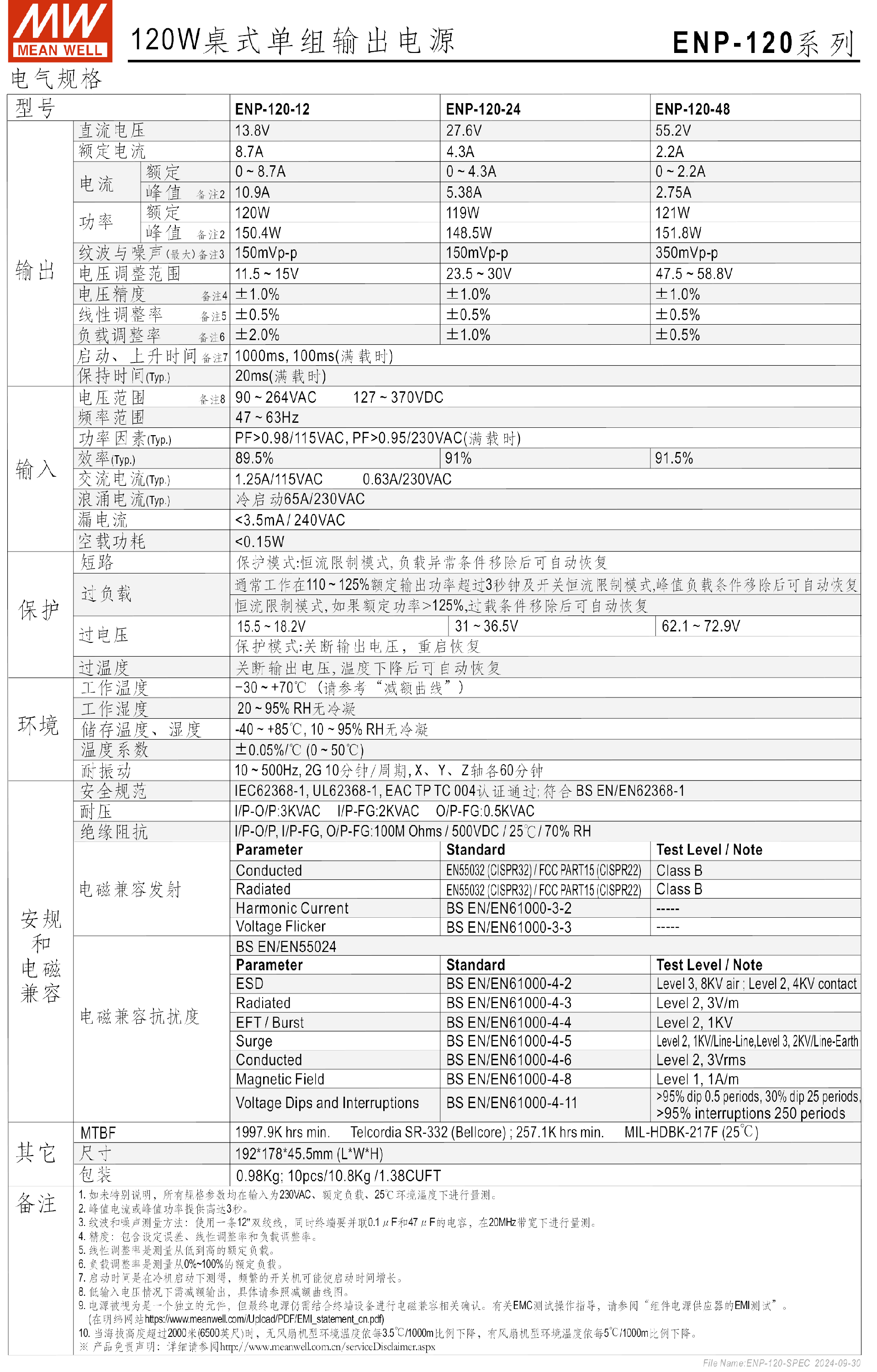 臺(tái)灣明緯ENP-240系列Ⅵ級(jí)桌式單組輸出電源