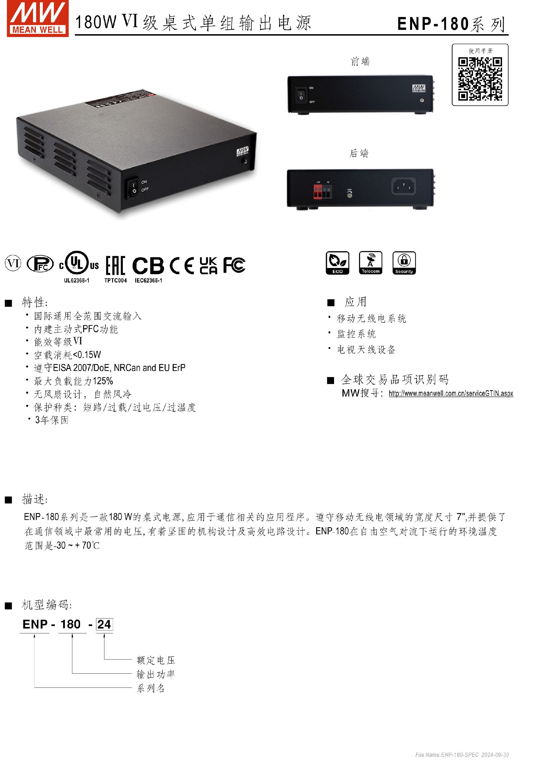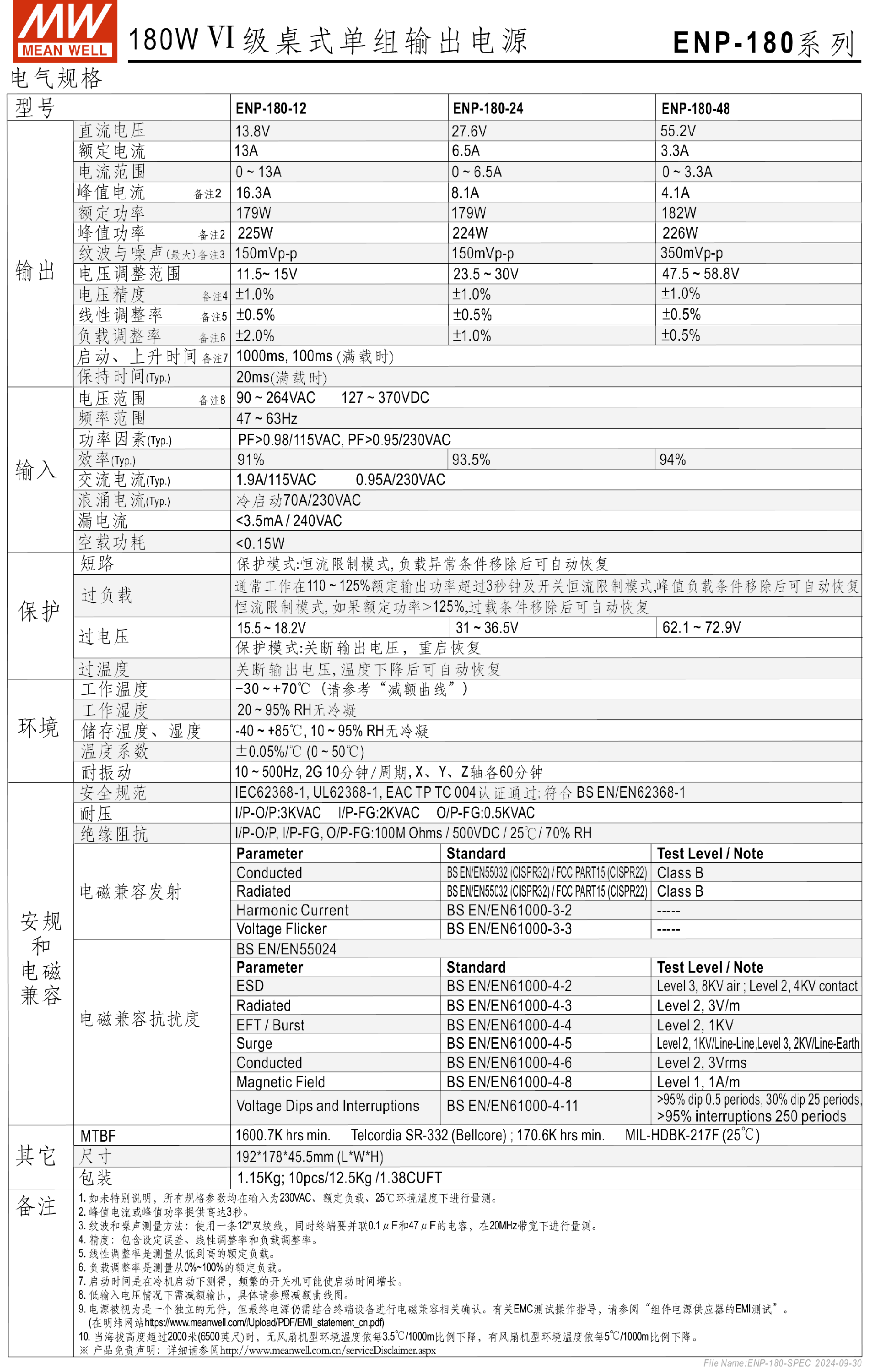 臺灣明緯ENP-240系列Ⅵ級桌式單組輸出電源