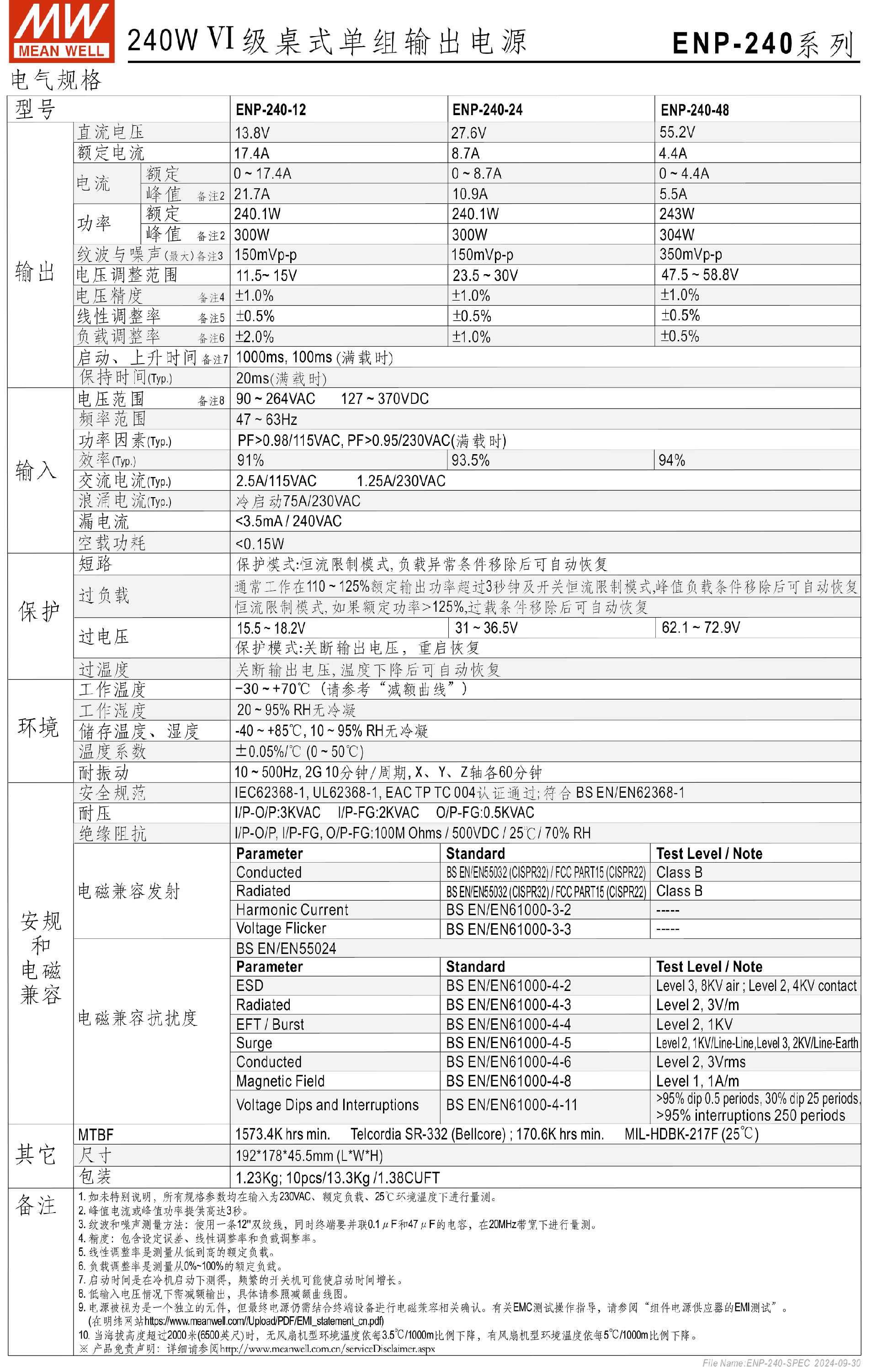 臺灣明緯ENP-360系列Ⅵ級桌式單組輸出電源