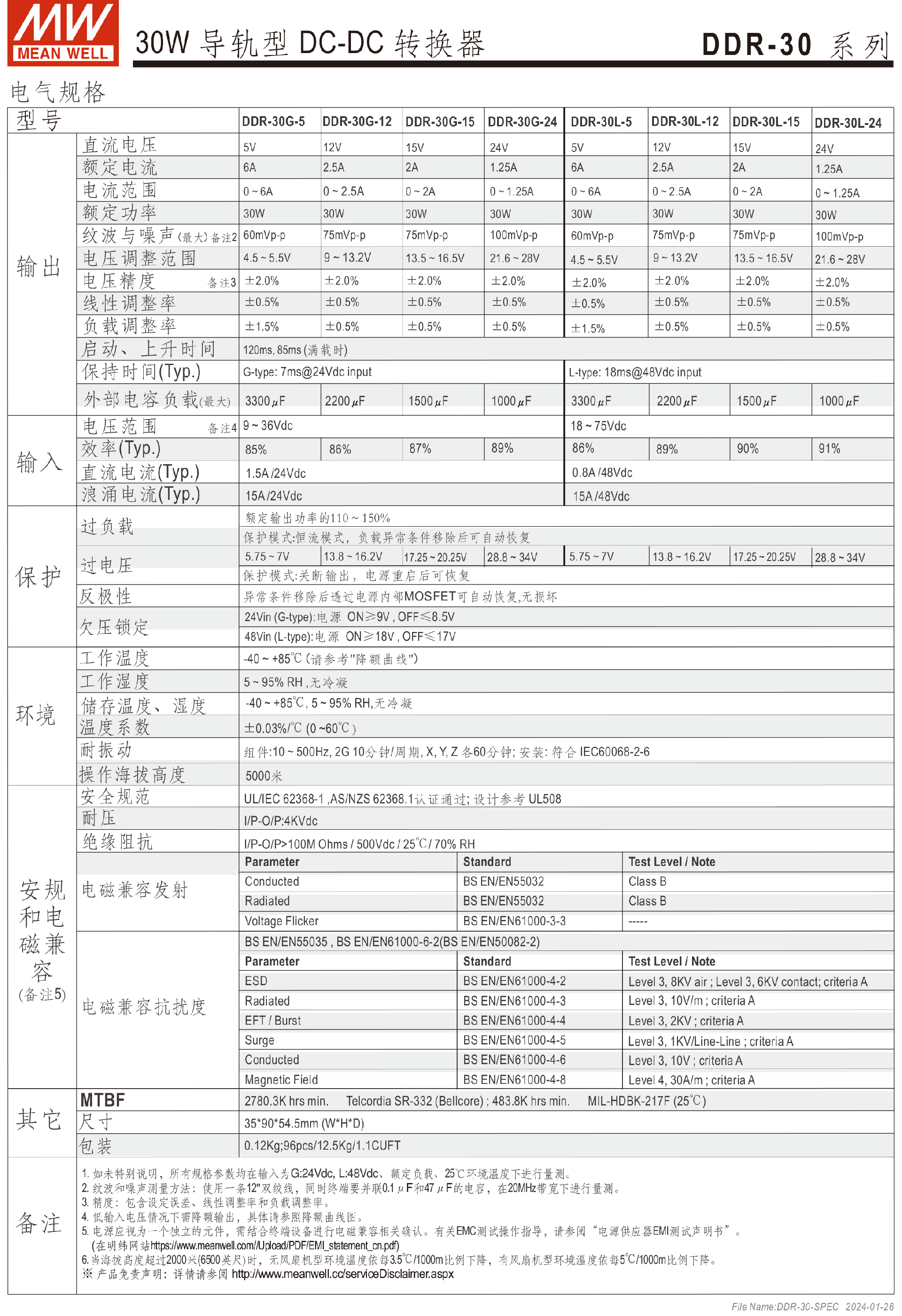 明緯電源DDR-120系列120W導(dǎo)軌型DC-DC轉(zhuǎn)換器