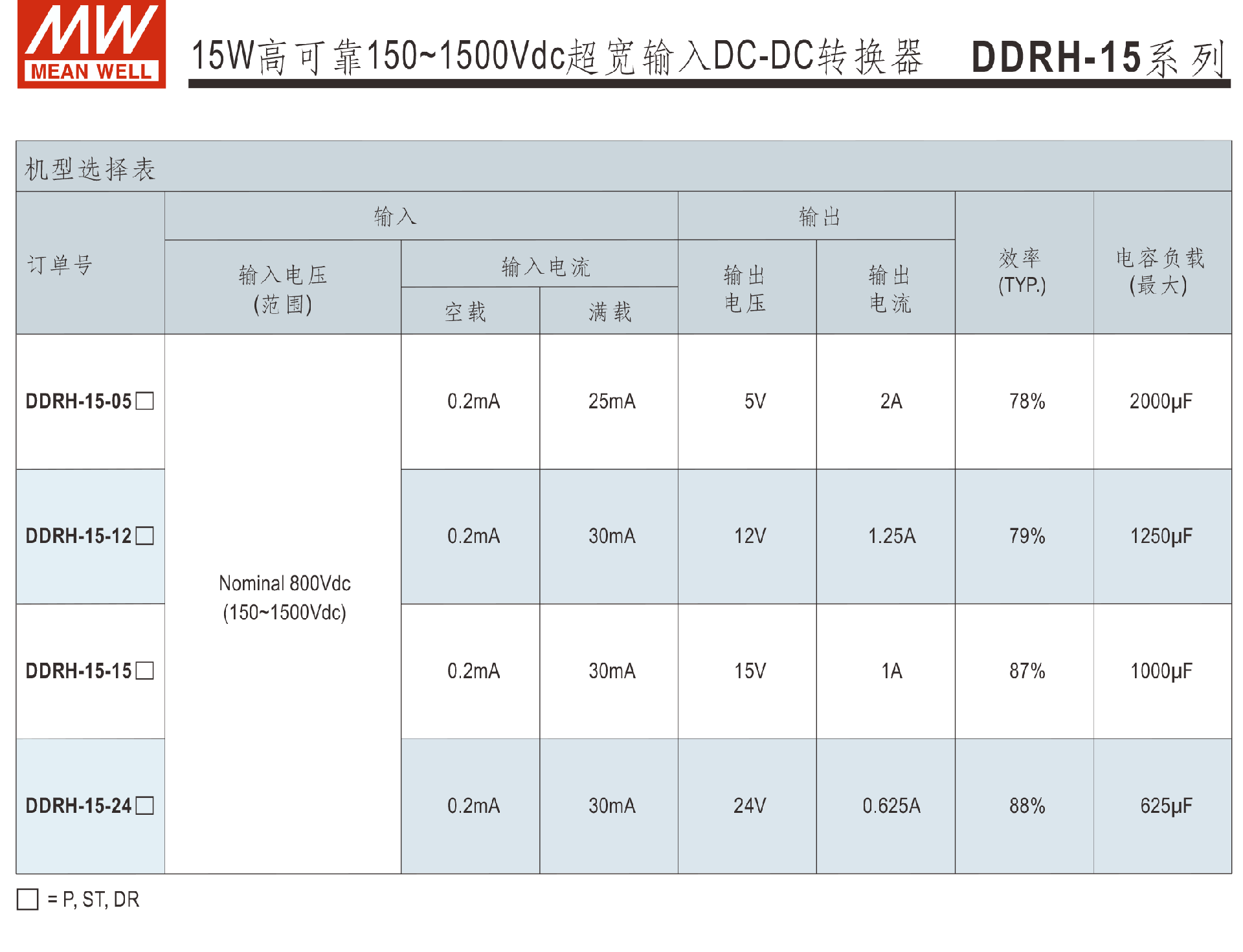 明緯電源DDRH-60系列150~1500Vdc超寬輸入DC-DC轉(zhuǎn)換器