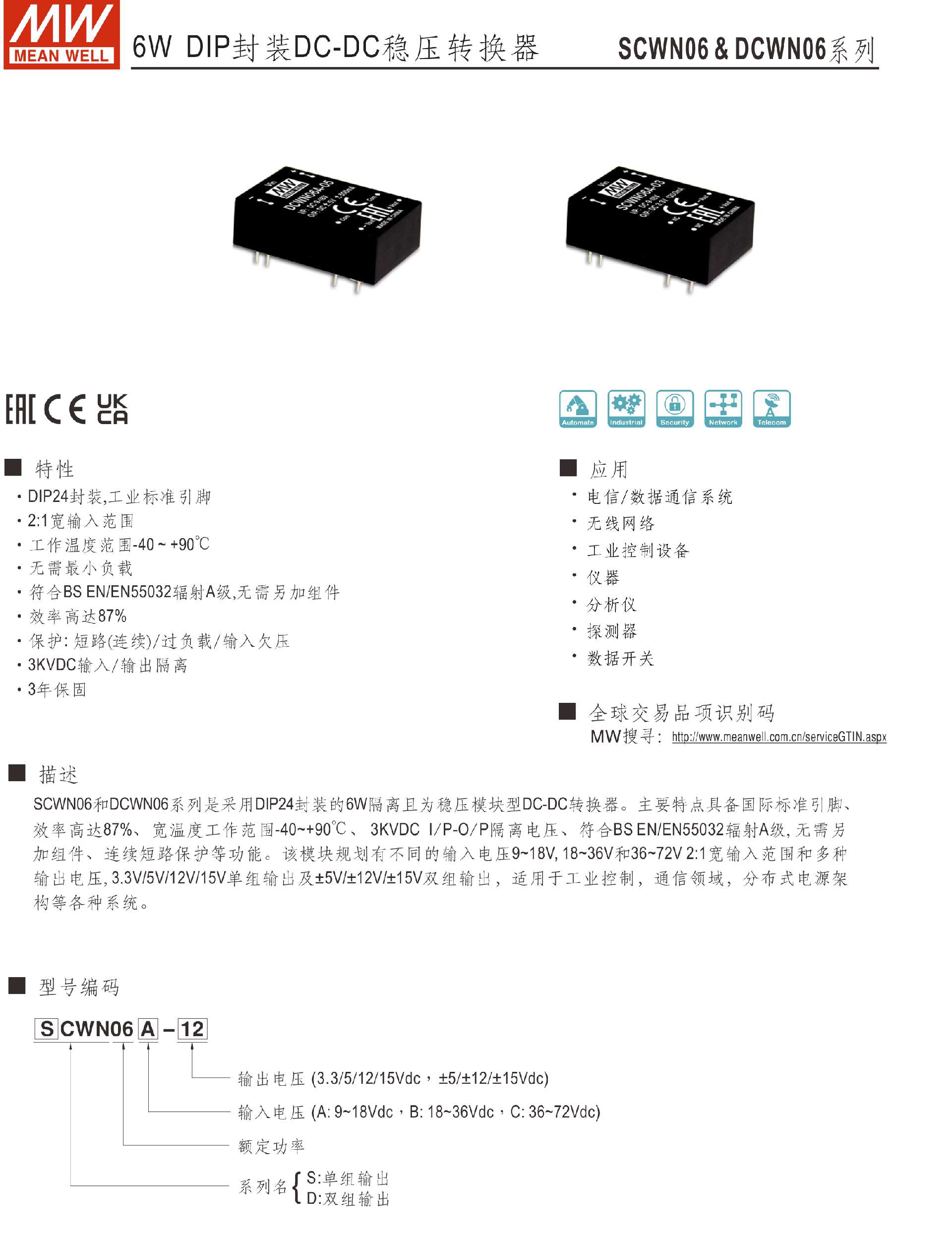 明緯電源SCWN06系列單組DCWN06系列雙組6W DIP封裝DC-DC穩(wěn)壓轉(zhuǎn)換器-DIP系列-東莞市誠緯實(shí)業(yè)有限公司-