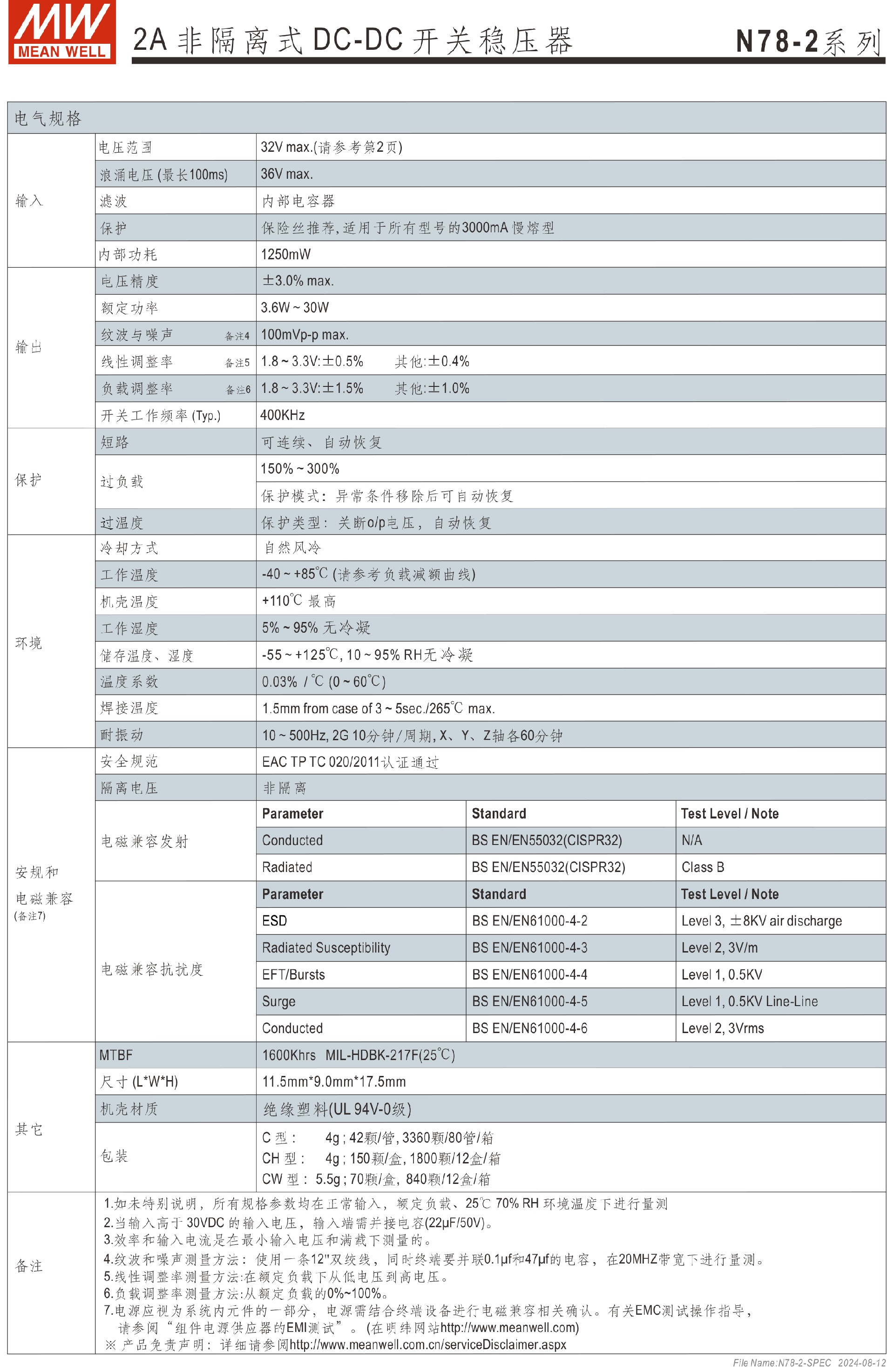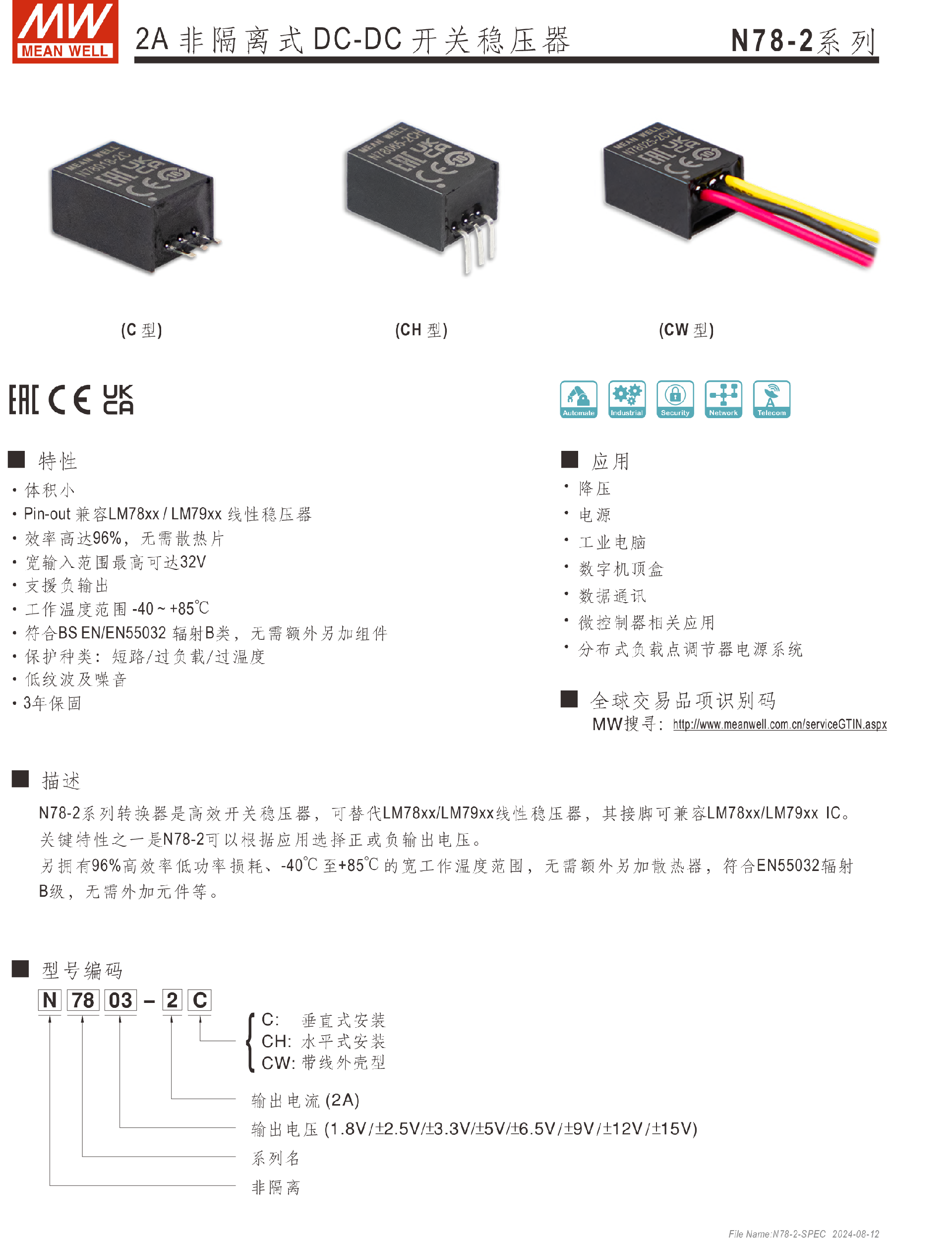 明緯電源N78-2系列2A非隔離式DC-DC開關(guān)穩(wěn)壓器-N78系列—非隔離型-東莞市誠緯實(shí)業(yè)有限公司-