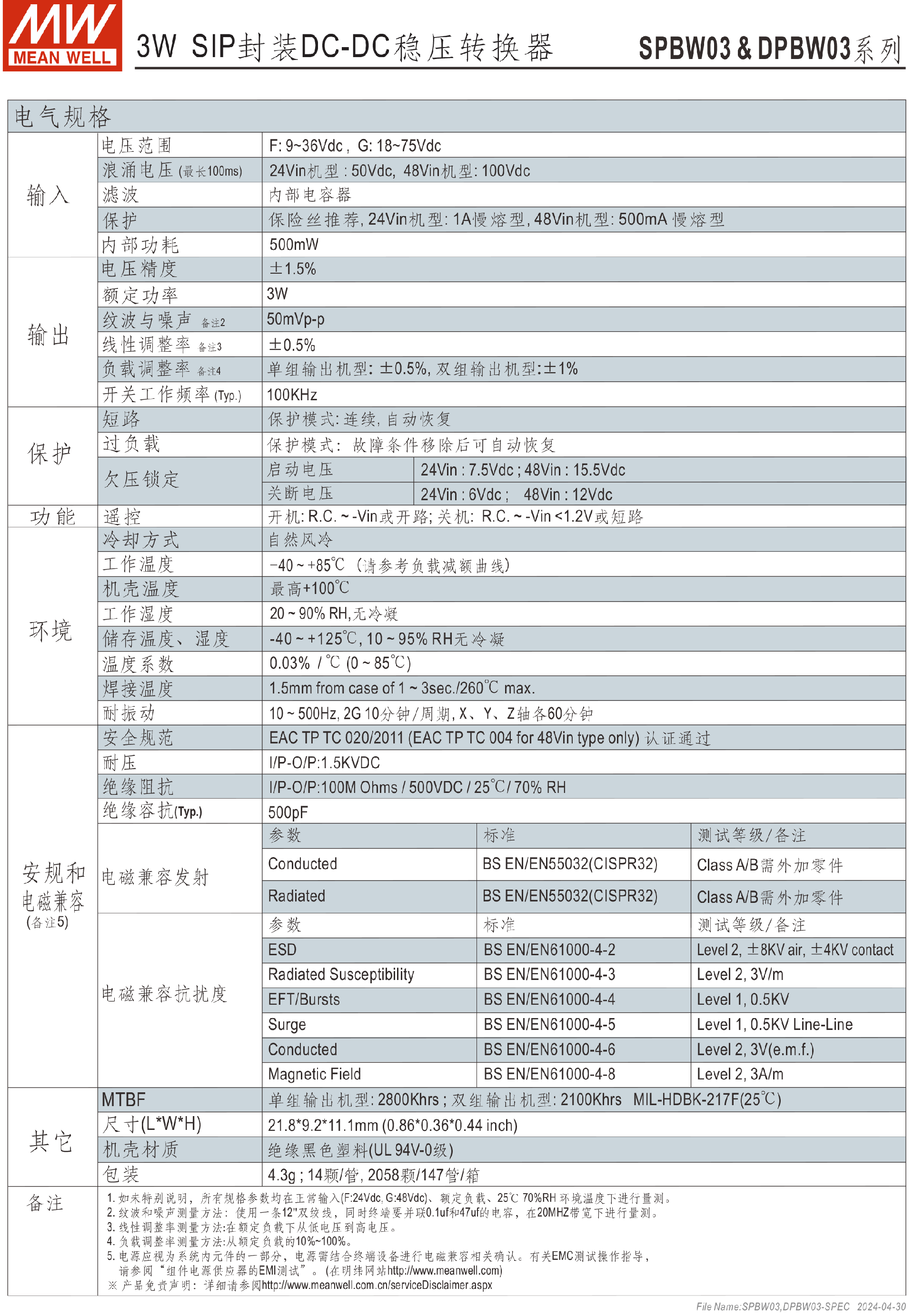 明緯電源SPU03系列3W DC-DC不穩(wěn)壓單組輸出轉(zhuǎn)換器