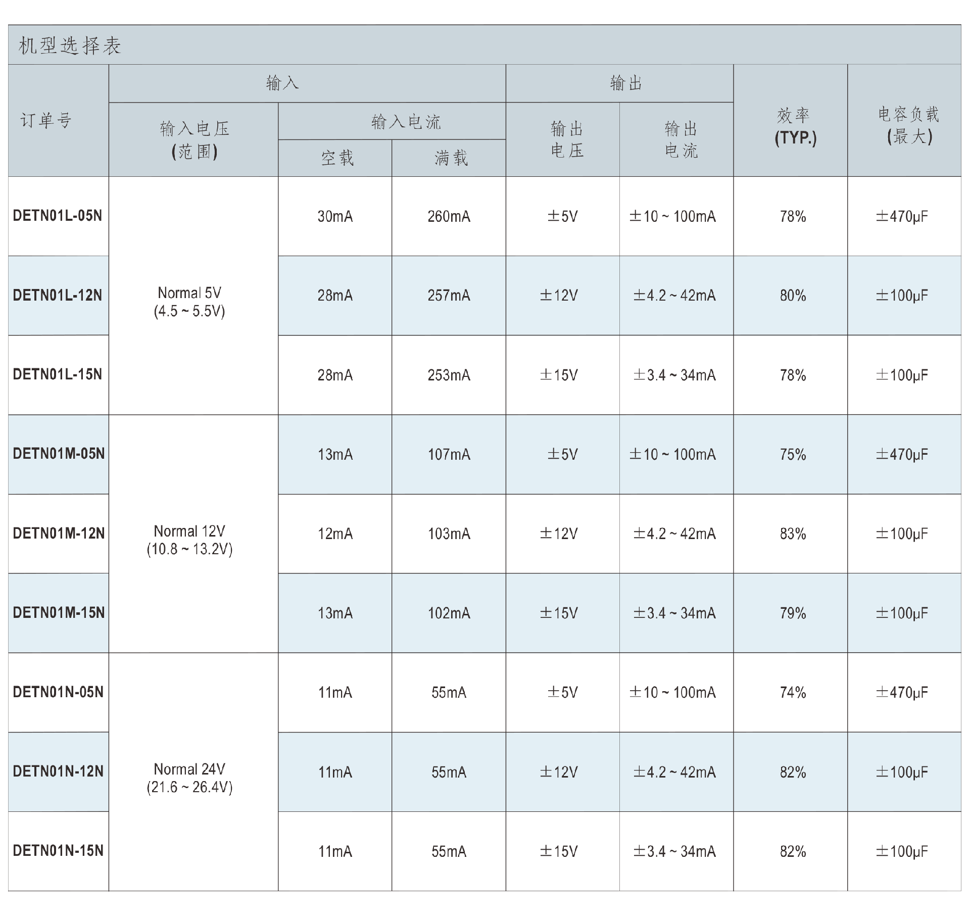 明緯電源DETN01系列1W SMD封裝DC-DC非穩(wěn)壓轉(zhuǎn)換器