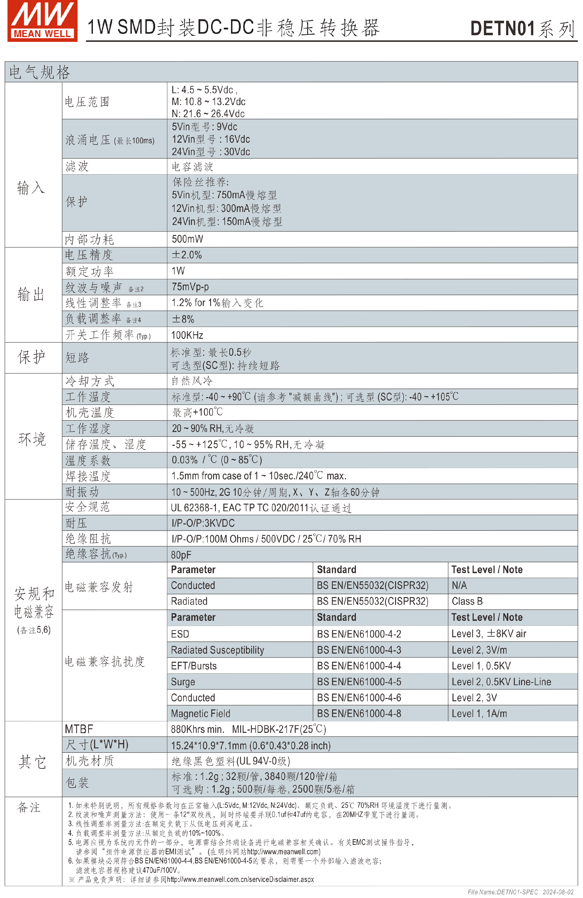 明緯電源DETN02系列2W SMD封裝DC-DC非穩(wěn)壓轉(zhuǎn)換器