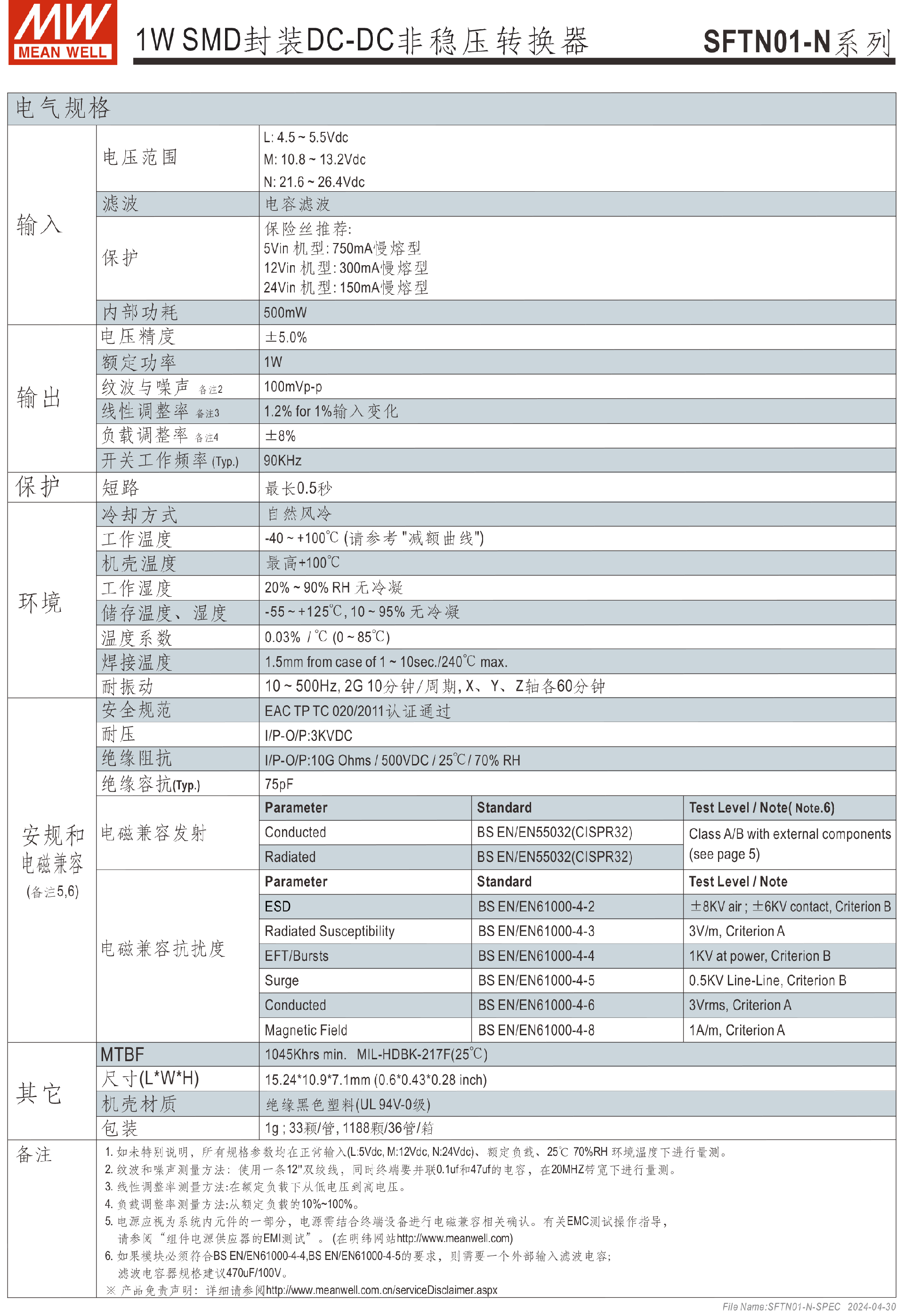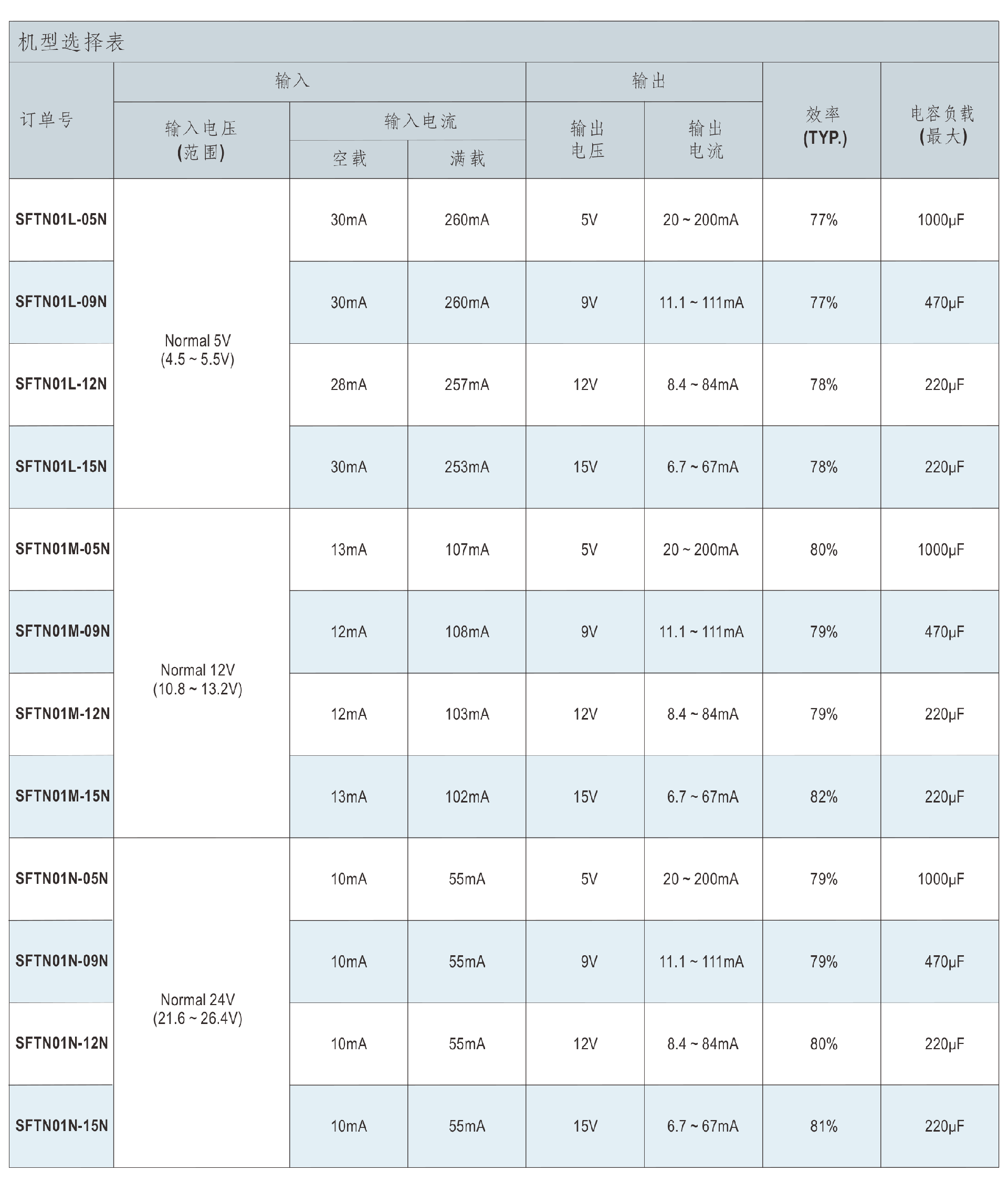 明緯電源SFTN01系列1W SMD封裝DC-DC非穩(wěn)壓轉(zhuǎn)換器
