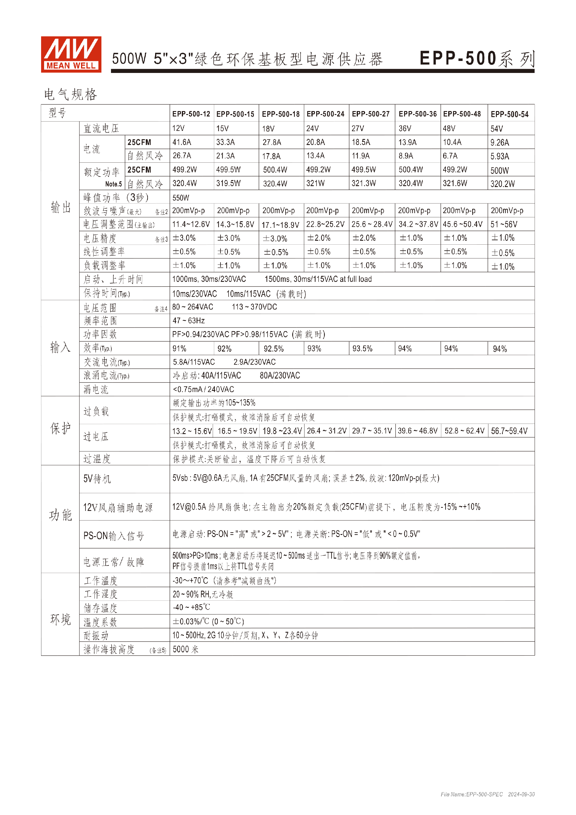 臺灣明緯EPP-500系列500W單組輸出開關(guān)電源-工業(yè)用-東莞市誠緯實業(yè)有限公司-