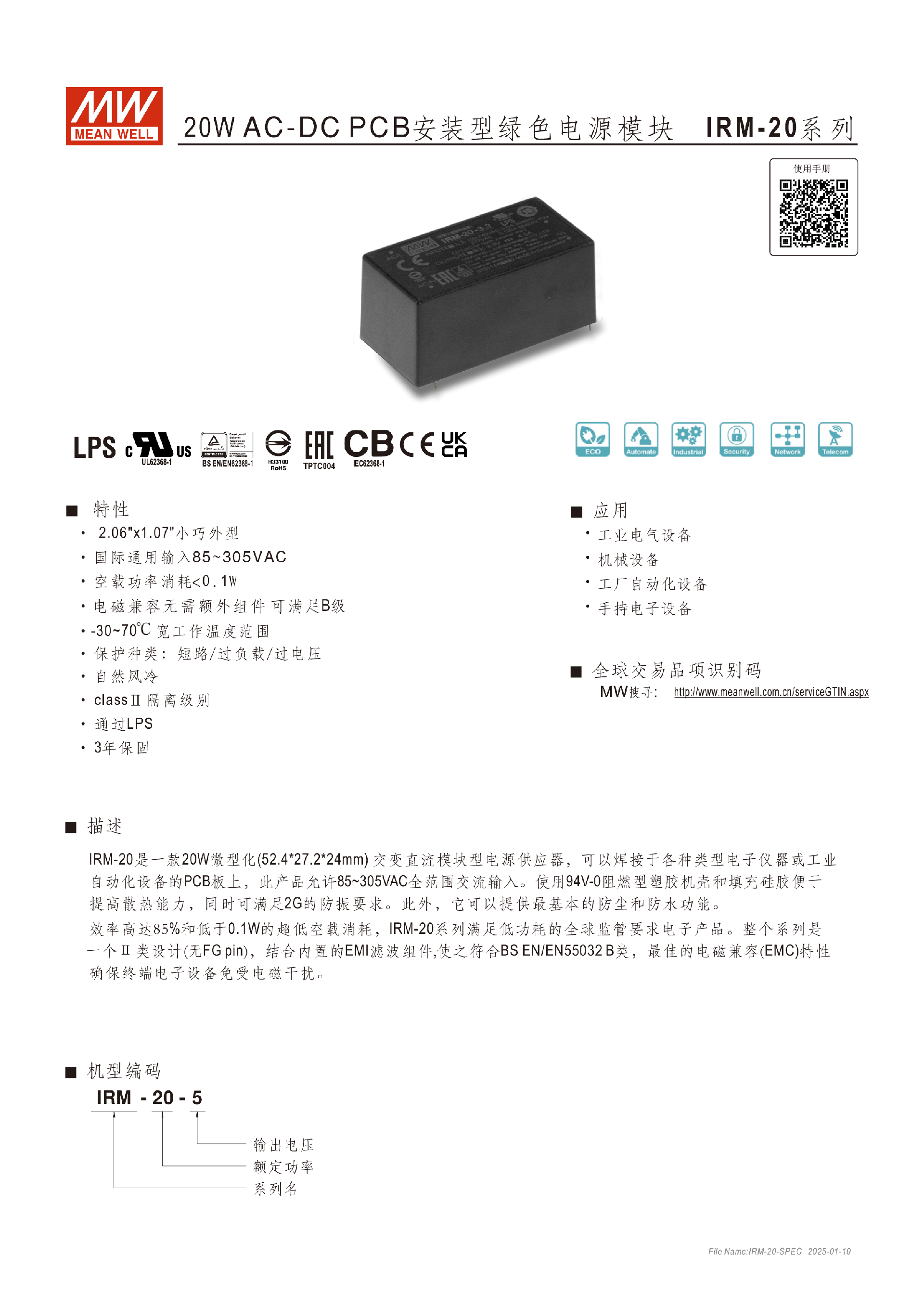 明緯PS-05系列5W單組輸出開關(guān)電源