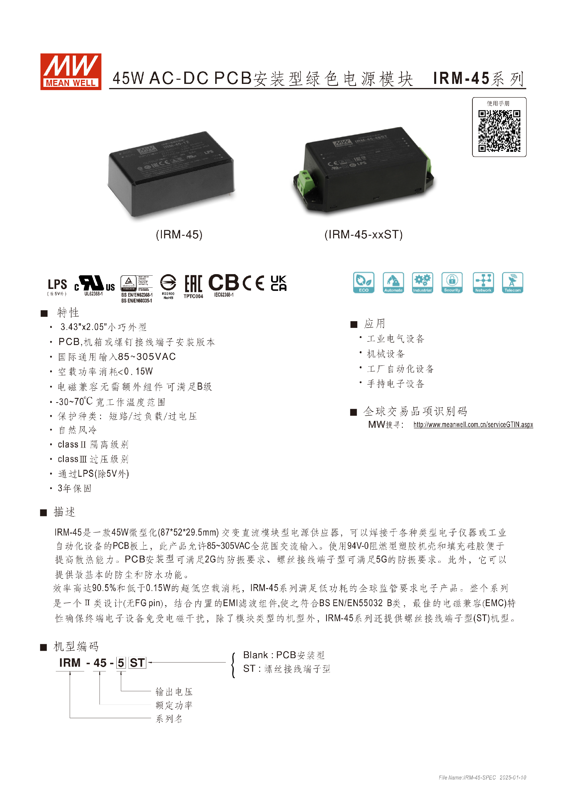 明緯IRM-45系列45W膠囊型電源-工業(yè)用-東莞市誠緯實業(yè)有限公司-