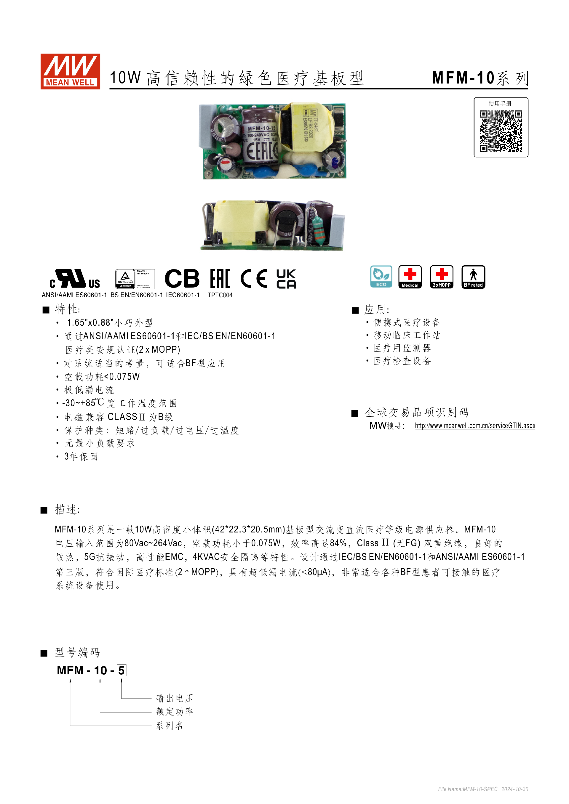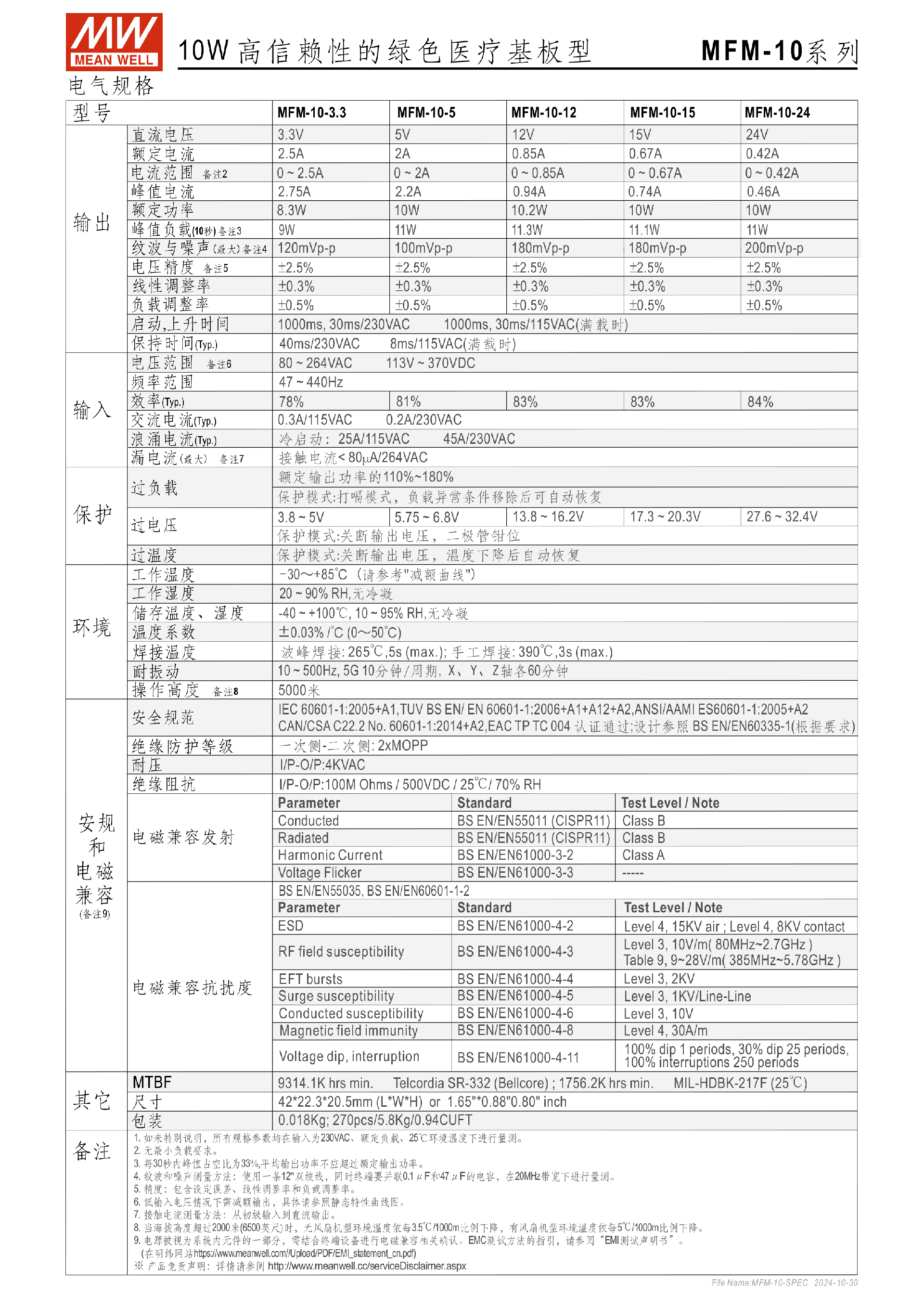臺灣明緯MFM-10系列醫(yī)療基板型電源-醫(yī)療用-東莞市誠緯實業(yè)有限公司-