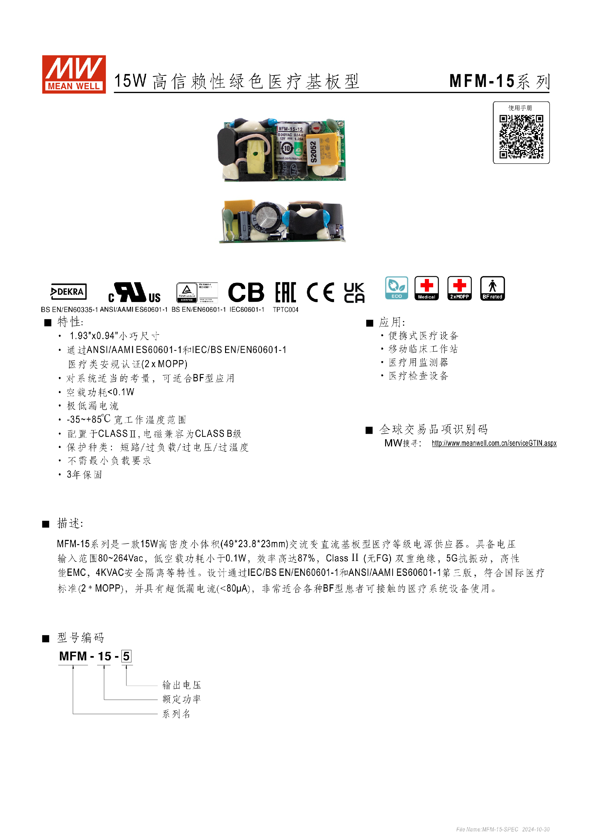 臺灣明緯MPM-05系列醫(yī)療封閉型電源