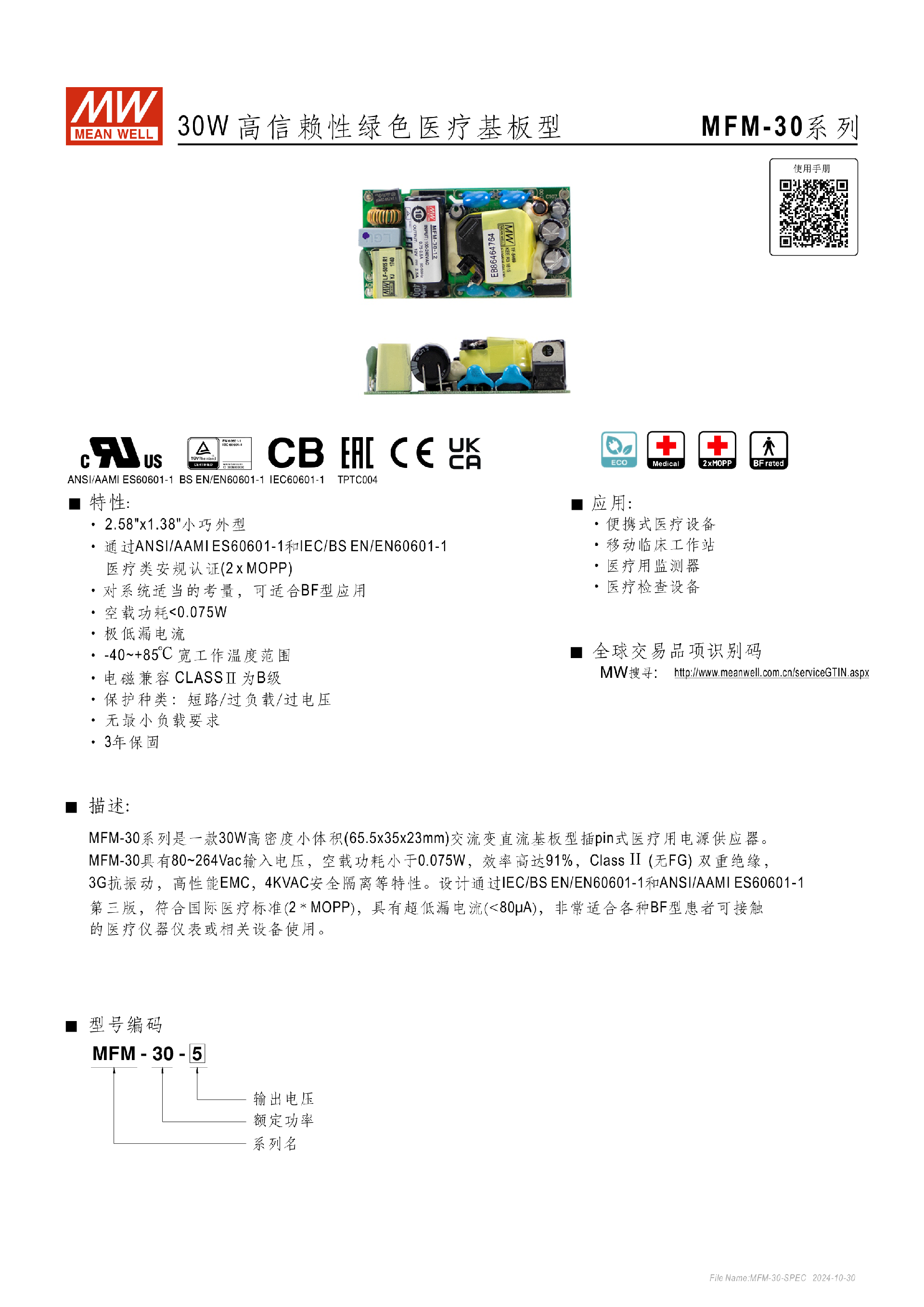 臺(tái)灣明緯MFM-30系列醫(yī)療基板型電源-醫(yī)療用-東莞市誠(chéng)緯實(shí)業(yè)有限公司-