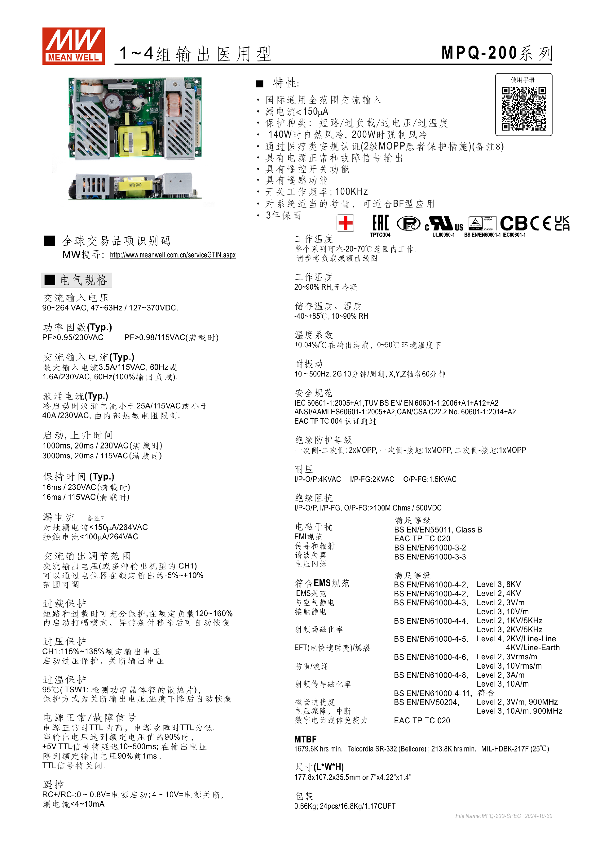 臺灣明緯MPQ-200系列1~4組輸出醫(yī)用型電源-醫(yī)療用-東莞市誠緯實業(yè)有限公司-
