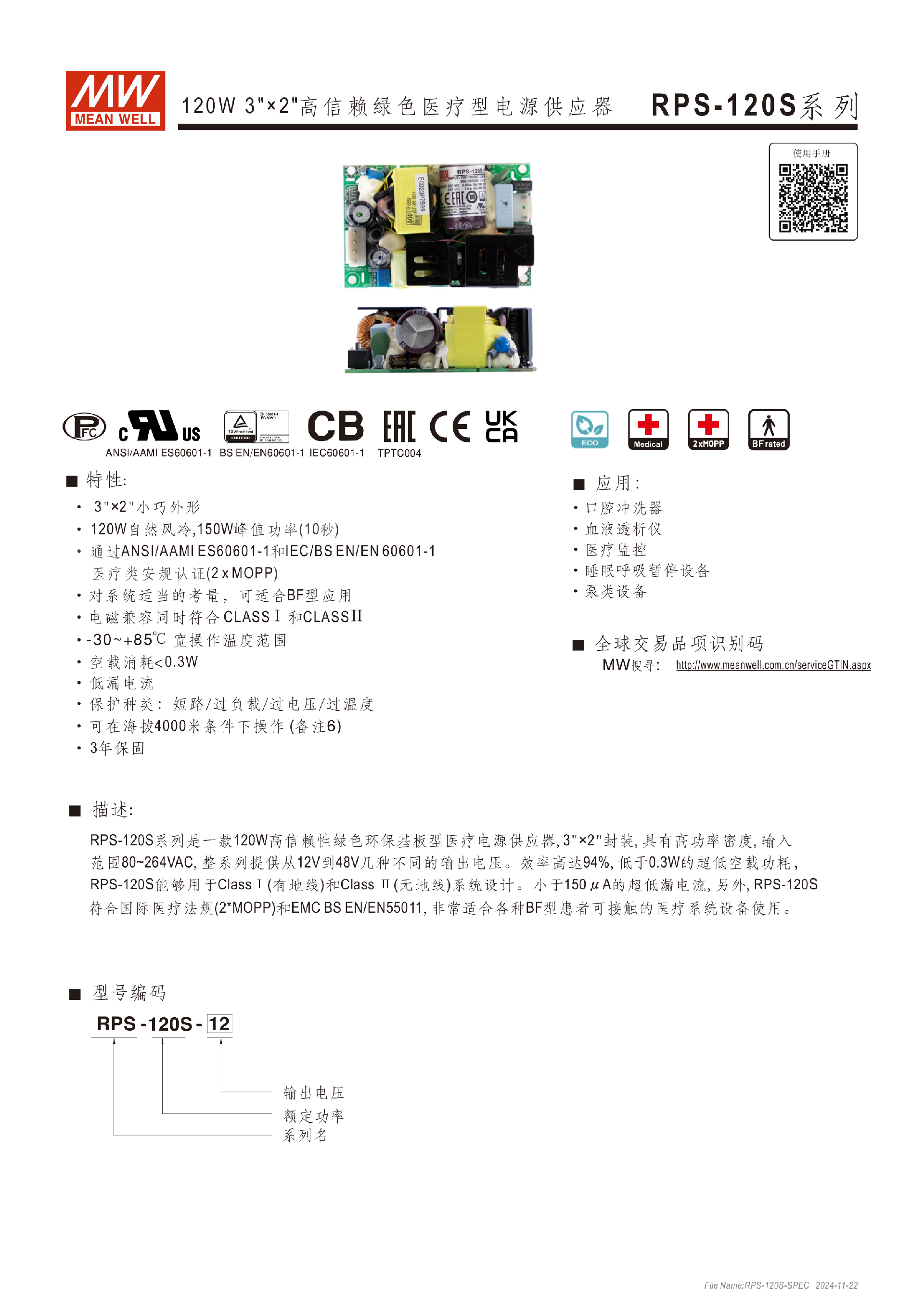 臺(tái)灣明緯RPT-160系列三組輸出醫(yī)療電源